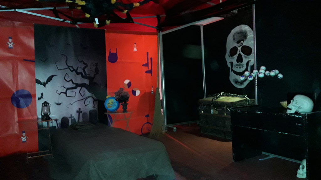 Le décors la chambre 666, notre animation escape game halloween pour toute la famille.