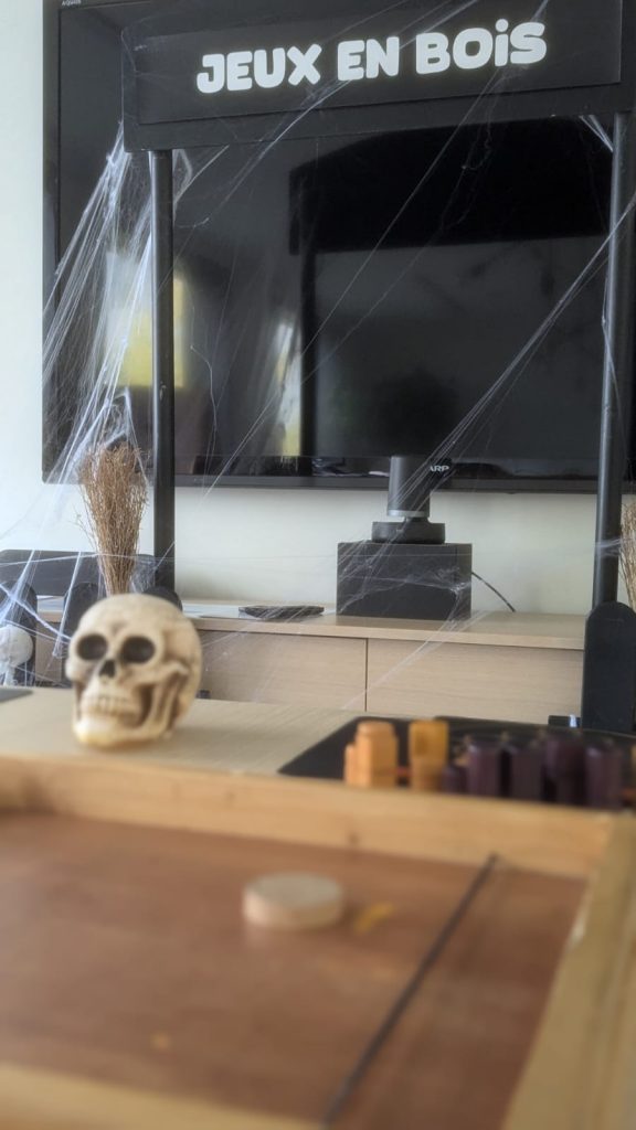 Les équipes peuvent à présent préparer les animations enfants effrayantes de notre HALLOWEEN Kids Club. Montage et mise en place, décoration, habillage, tout le monde s’affaire à agencer le programme ludique jeune public avec le soin d’une prestation professionnelle, même si le maitre des jeux trouvera toujours un truc à « aligner parfaitement », bougonne t’il tout le temps !