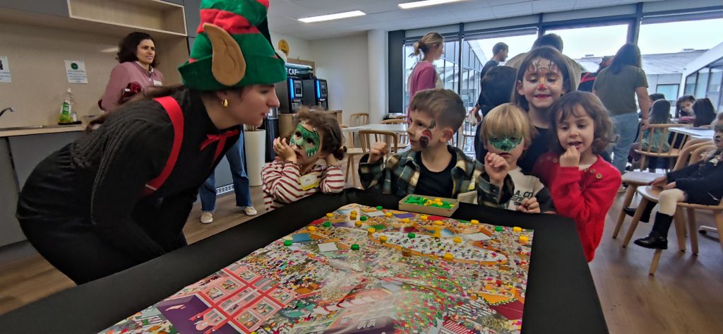 En 2025, comme l’année précédente, animadom organise dans les locaux de l’entreprise Floa, à Chauray et à Bordeaux, un kids Club identique sur deux sites différents. 80 enfants puis 25 enfants découvrent chaque année depuis 3 ans de nouveaux défis de noël avec pour seul impératif de leur offrir un challenge coopératif qui aboutisse à la remise des cadeaux. Options Maquillage et Arrivée du Père Noël pour parfaire notre animation enfants de saison et laisser un souvenir magique à tous nos petits invités rejoints en fin de journée par leur parents pour un goûter de noël bien mérité.