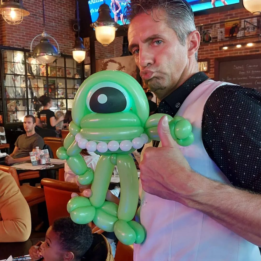 1. Sculpteur de ballons en déambulation : Notre ballooneur distribue aux enfants les sculptures de ballons fabriquées à leur demande et sous leurs yeux.